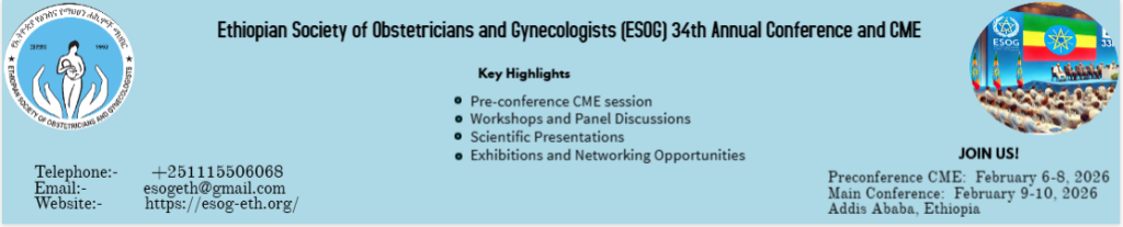The Ethiopian Society of Obstetricians and Gynecologists (ESOG) is delighted to announce its upcoming 34th Annual Conference, scheduled to take place in February 6-10, 2026.